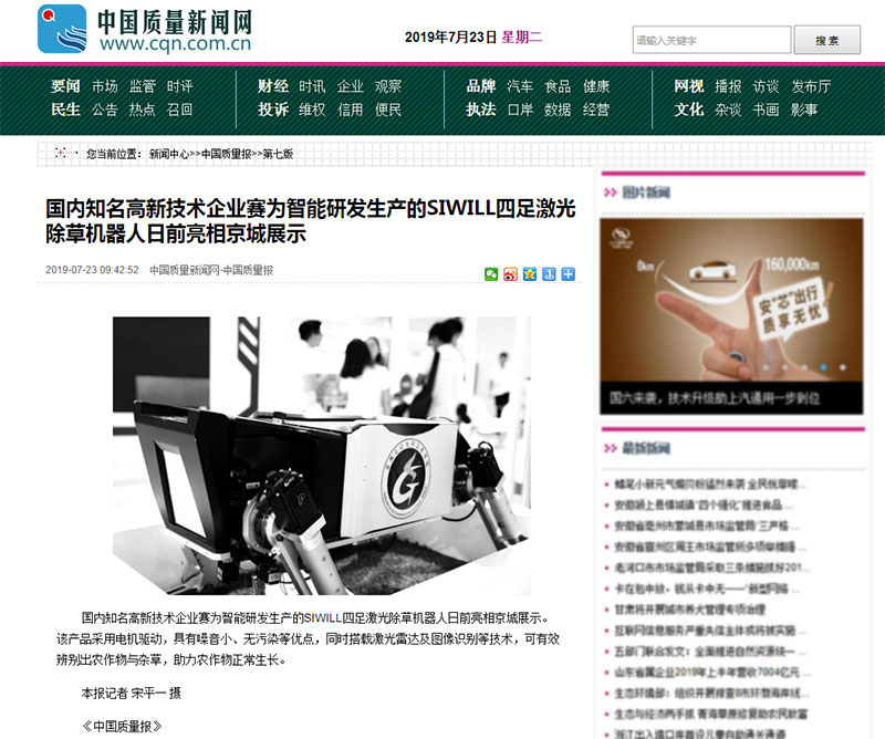 国内知名高新技术企业AK手机网智能研发生产的SIWILL四足激光除草机器人日前亮相京城展示。该产品采用电机驱动,具有噪音小、无污染等优点,同时搭载激光雷达及图像识别等技术,可有效辨别出农作物与杂草,助力农作物正常生长。本报记者 宋平一 摄 《中国质量报》