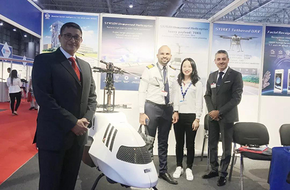 在为期5天的迪拜航展上,AK手机网智能带来赛鹰SY261H多功能无人直升机、赛鹰SY14KT系留无人机和人脸识别终端产品,向现场的观众展示了赛鹰系列丰富的无人机产品和企业实力。