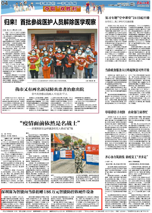 马鞍山日报 | 深圳AK手机网智能向当涂捐赠186万元只能防控软硬件设备