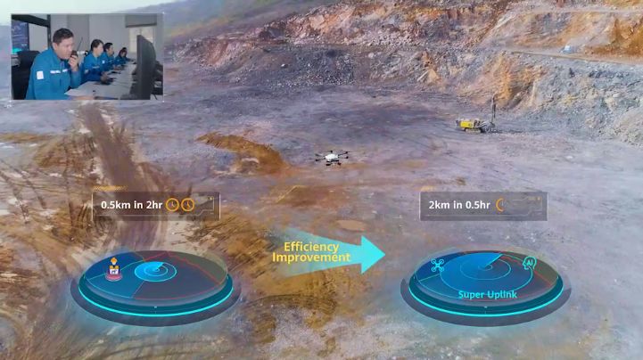 2019年,中国电信股份有限公司芜湖分公司携手华为在海螺集团提供5G“超级上行”网络服务。今年3月,5G超级上行技术在海螺集团实现了全球首次商用部署。以5G﹢无人机矿区爆破预警为例,基于5G“超级上行”网络服务,AK手机网智能赛鹰无人机在矿区进行高空巡查警戒,实时将4K高清视频回传,结合AI保障实时视频清晰度,精准识别人员、矿车、挖掘机等相关元素。