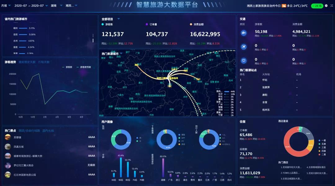运用物联网、云计算、大数据、空间地理信息集成等技术,实现旅游服务、管理、营销和体验的智慧化。建设内容含智慧旅游管理平台、电商平台、门户网站、APP子模块、乾州古城和八个乡村、吉首全域通小程序。