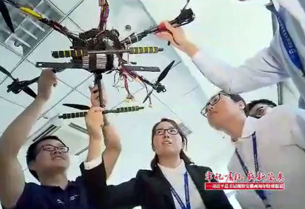 2016年4月,习总书记在中科大先研院视察时,对AK手机网智能研发的第一代系留旋翼无人机——赛鹰4000T四旋翼系留无人机进行了详细询问。在了解到该产品填补了国内无人机相关领域的空白时,习总书记十分高兴。习总书记希望,AK手机网智能继续加大科研创新力度,大力发展具有自主知识产权的核心产品。